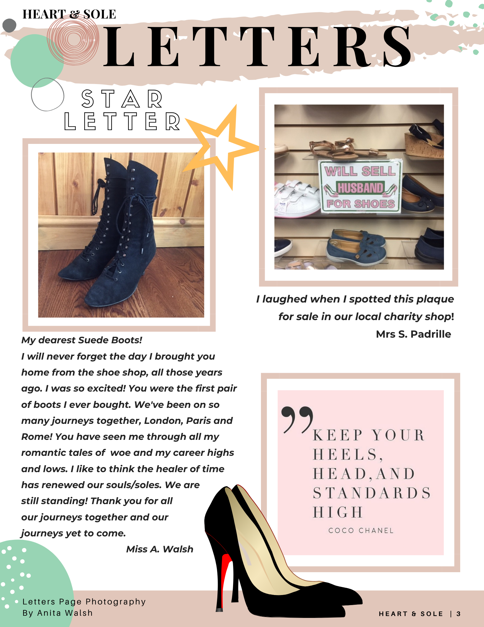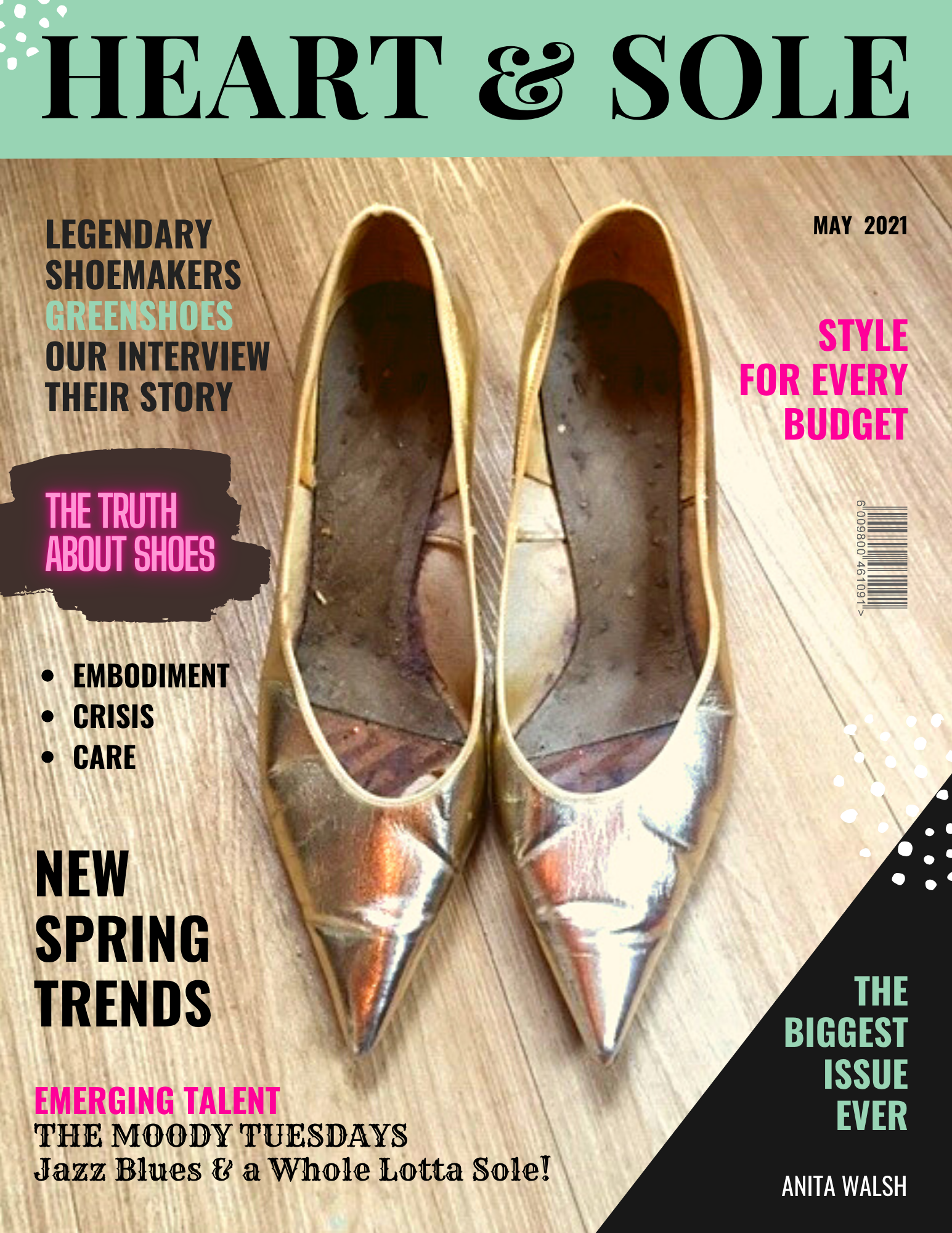 The object I chose was a shoe. I contacted the shoe making company ‘GreenShoes’ for an interview, and I created a magazine with the topics I researched being the articles within the magazine. I wrote all the articles and poems, drew the illustrations and produced all the creative content for the magazine.