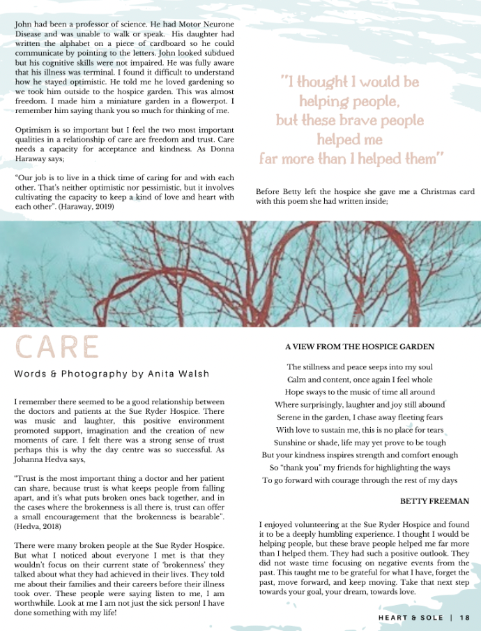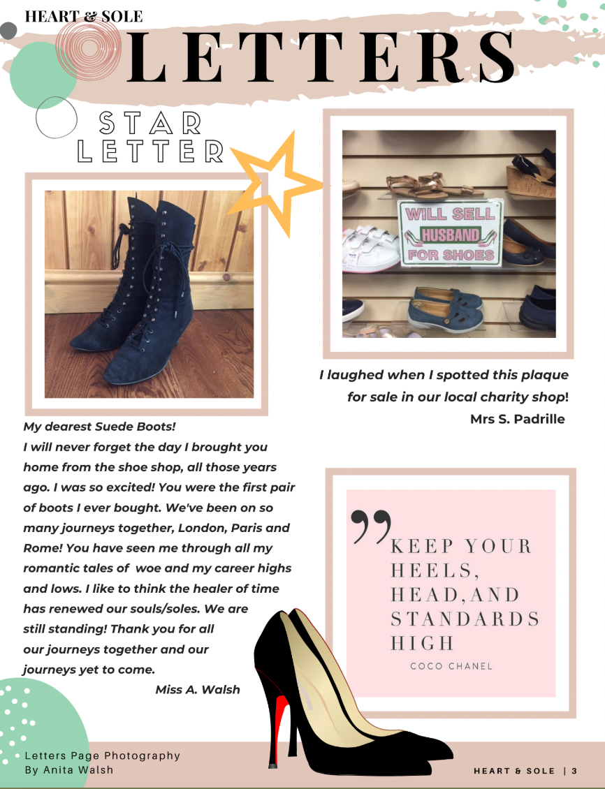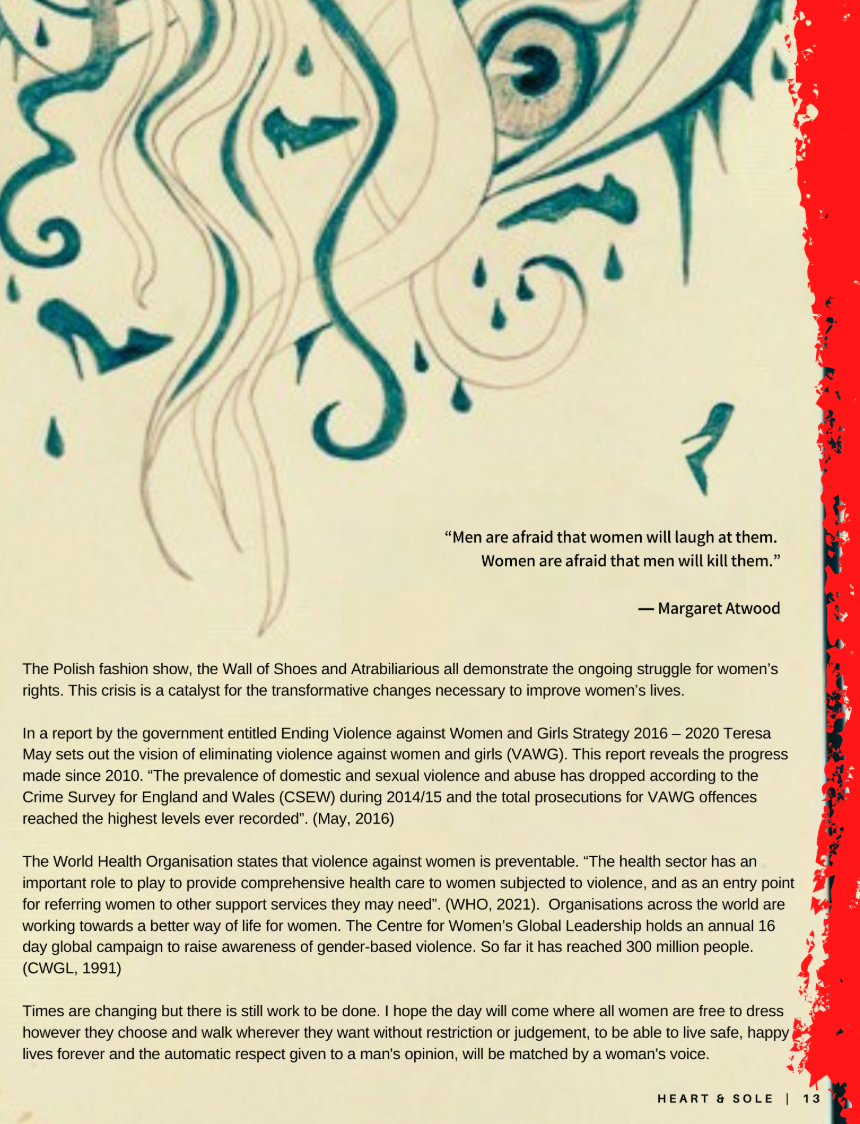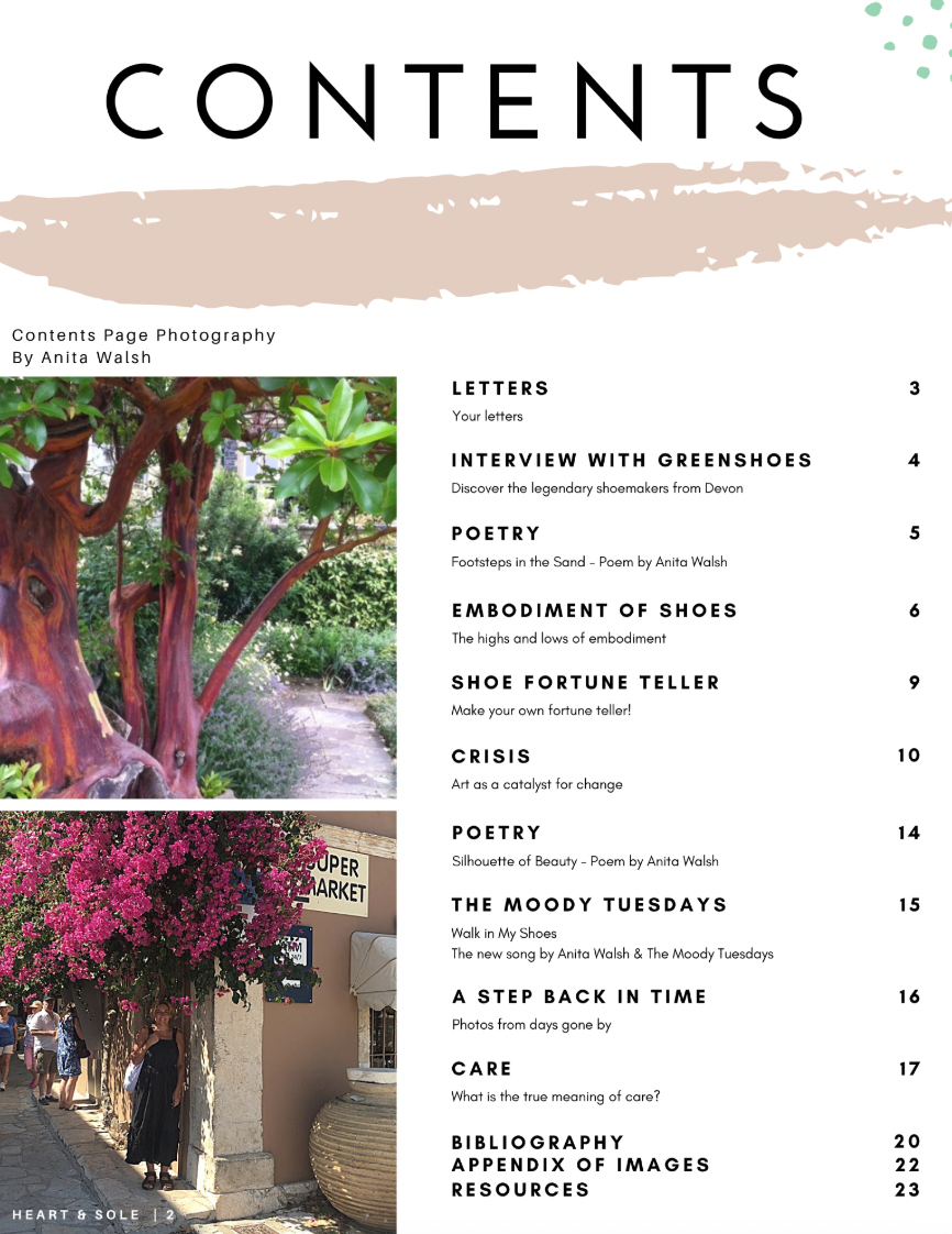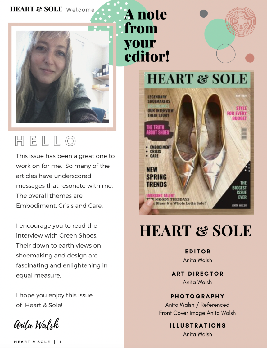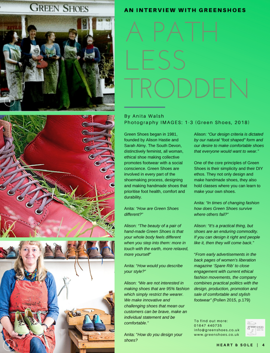 The object I chose was a shoe. I contacted the shoe making company ‘GreenShoes’ for an interview, and I created a magazine with the topics I researched being the articles within the magazine. I wrote all the articles and poems, drew the illustrations and produced all the creative content for the magazine.
