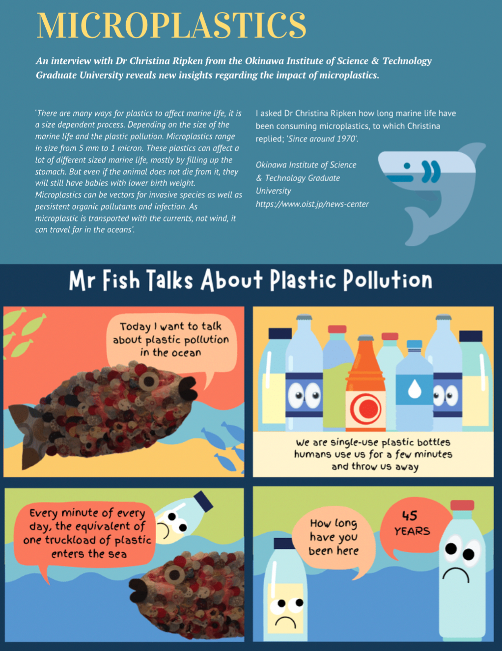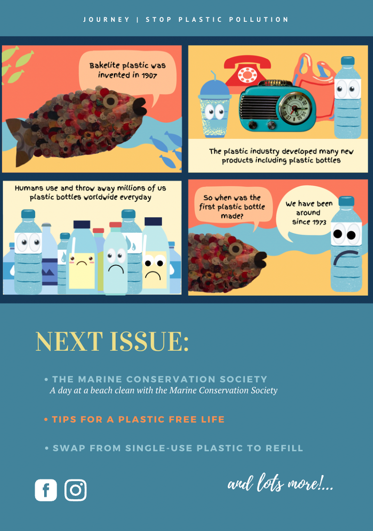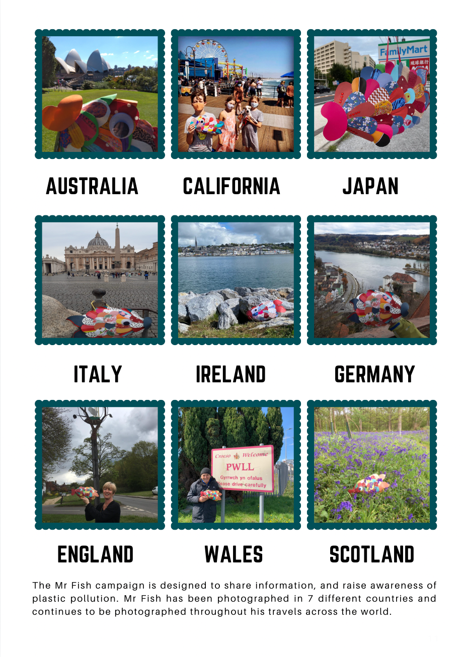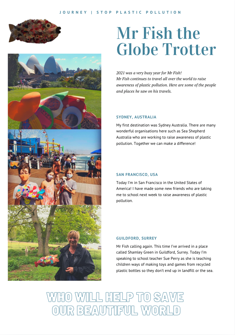 I volunteered in a beach clean up with the Marine Conservation Society, I created a newsletter and I designed and presented videos for children raising awareness of plastic pollution. I posted Mr Fish to six different countries - his adventures were shared and liked across social media!