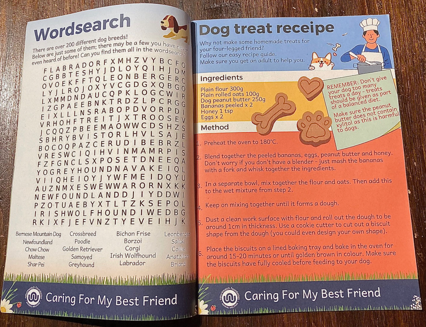 Dog Activity Book designed for children to promote understanding, kindness and fun with our furry friends.